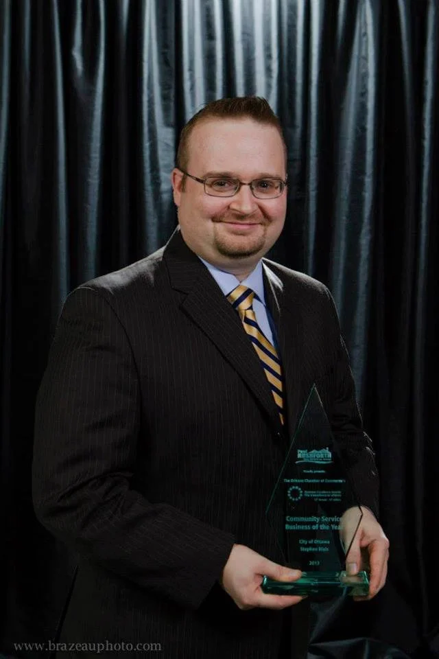 Cumberland City Councillor Stephen Blais was proud to be awarded the 2013 Community Service Business of the Year award from the Orléans Chamber of Commerce.