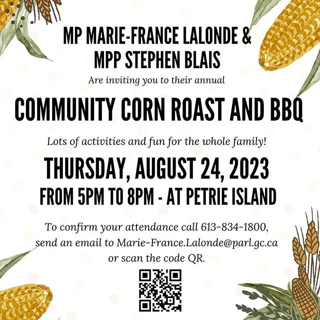 Summer Corn Roast and BBQ! EventsCommunity Updates Aug 9 Written By Come down to Petrie Island for lots of activities and fun for the whole family! BBQCommunity Corn Roast